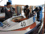 揚降装置にて先輩選手からの祝福を受ける長尾選手