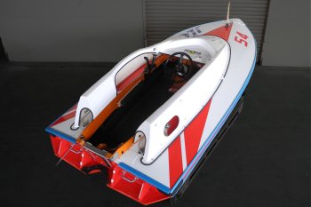 航走中の状態で、艇底の形状がよく分かると思います。 (操縦:2096中道善博 元選手) |